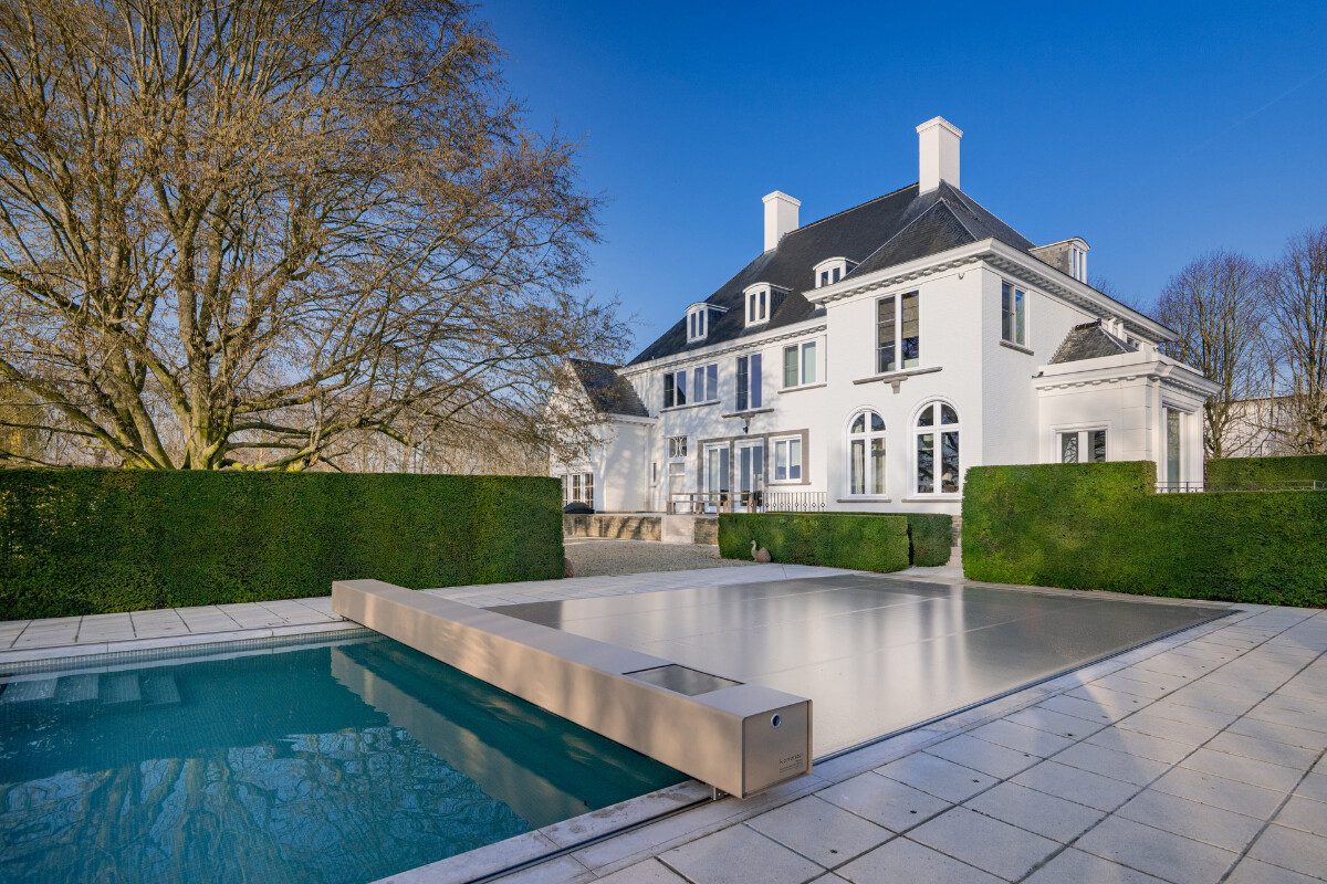Valet föll på en Automatisk Coverseal, diskret integrerad i terrassen. Dess hölje och membran i taupefärgade nyanser smälter harmoniskt in i helheten.